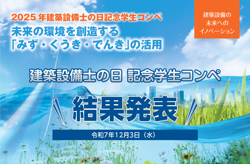 この度は、一般社団法人建築設備技術者協会中部支部2025年建築設備士の日記念学生コンペ・建築設備の未来へのイノベーション~未来の環境を創造する「みず・くうき・でんき」の活用~に多数応募いただき、心から感謝申し上げます。レベルの高い作品を応募してくださった学生の皆さんの努力に敬意を表します。また、多くの応募作品が集まる後押しをしてくださった先生方に感謝を申し上げます。